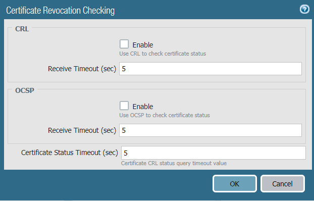 - Configure the firewall to perform CRL/OCSP checks to ensure that certificates presented during SSL decryption are valid.