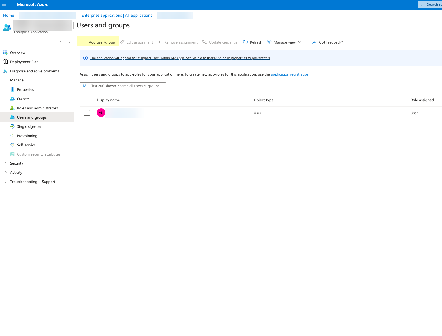 Click Add user/group and add the users or groups you want to be able to configure OIDC as an authentication type (for example, service accounts).