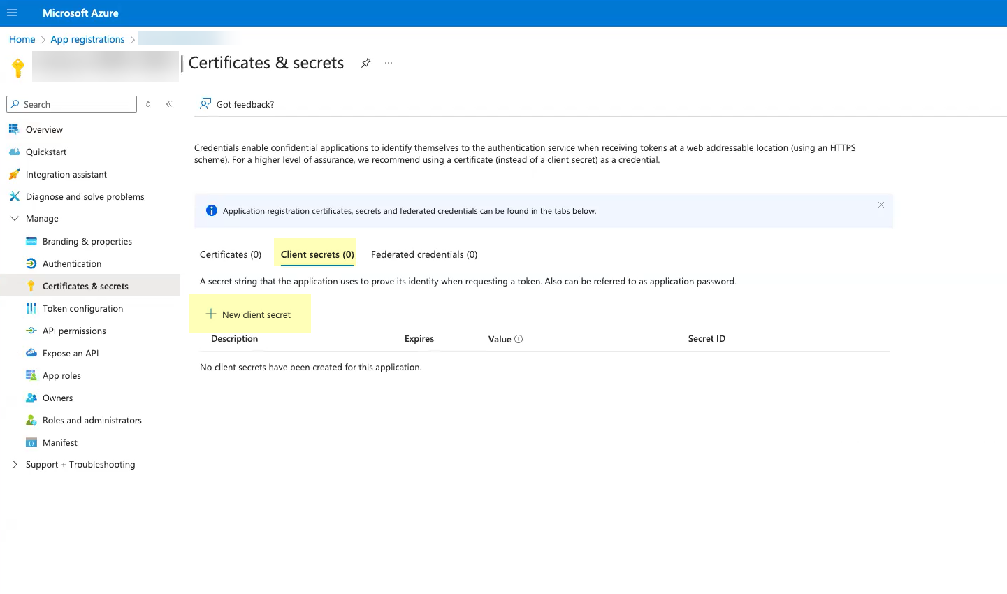 Select Client secrets then click New client secret.Don’t allow the client secret to expire. If the client secret isn’t up to date, users can’t log in using OIDC.