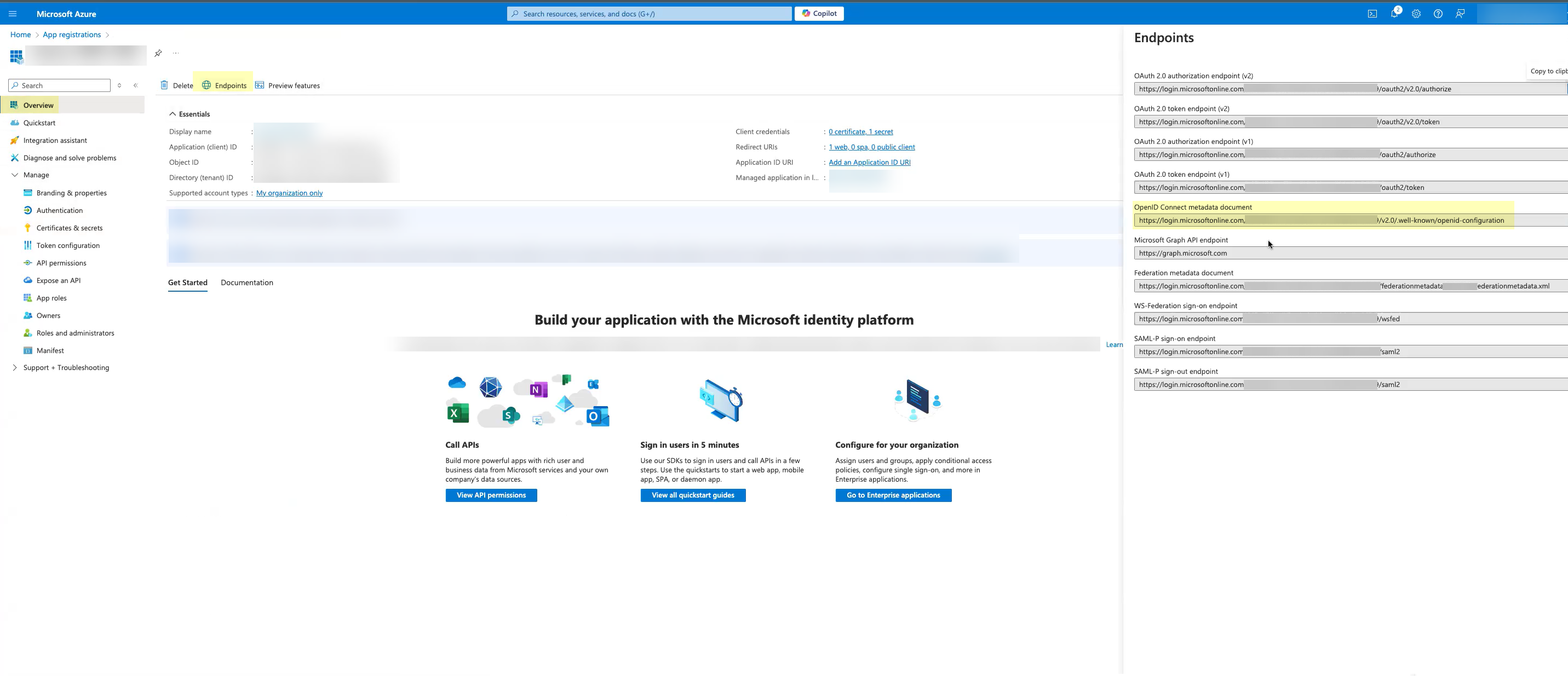 (Optional) Select OverviewEndpoints and Copy the OpenID Connect metadata document up to /2.0 (the well-known/openid-configuration section of the URL isn't necessary).