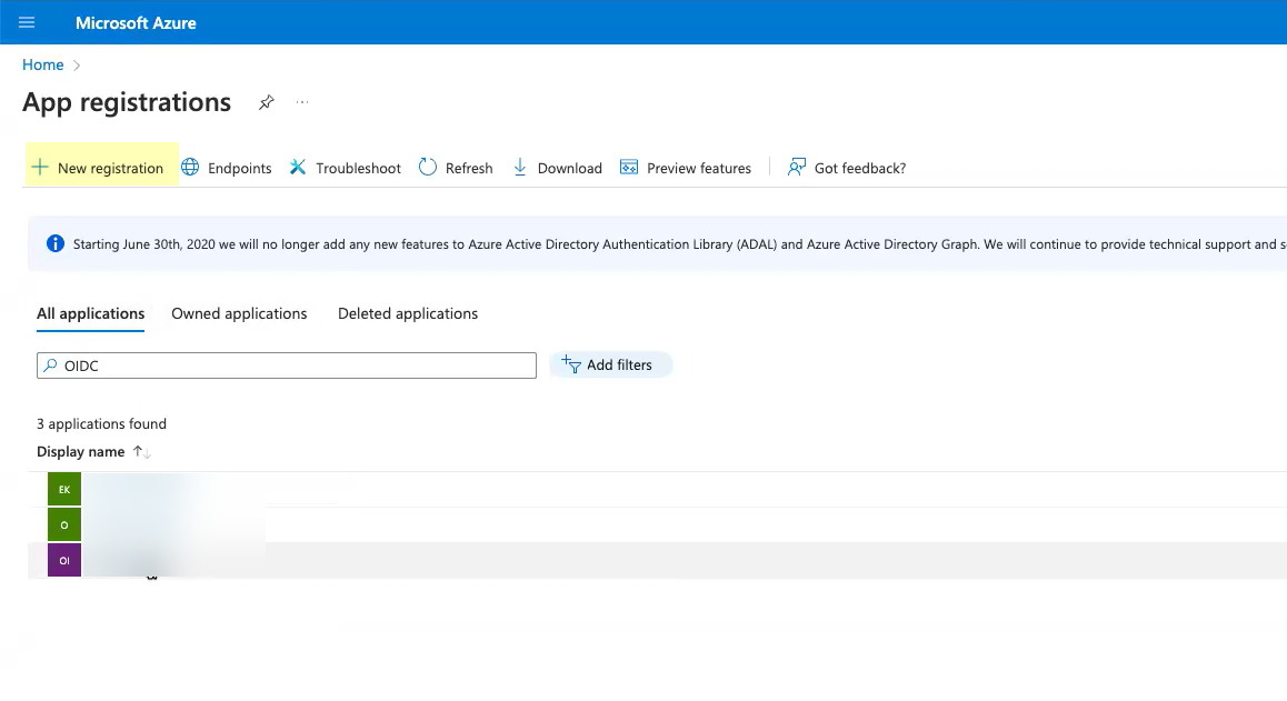 Obtain the information you need to complete your OIDC Azure configuration.- Select the application you just created then click Overview.Copy the Display name and Application (client) ID and save them in a secure location.