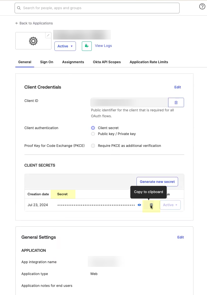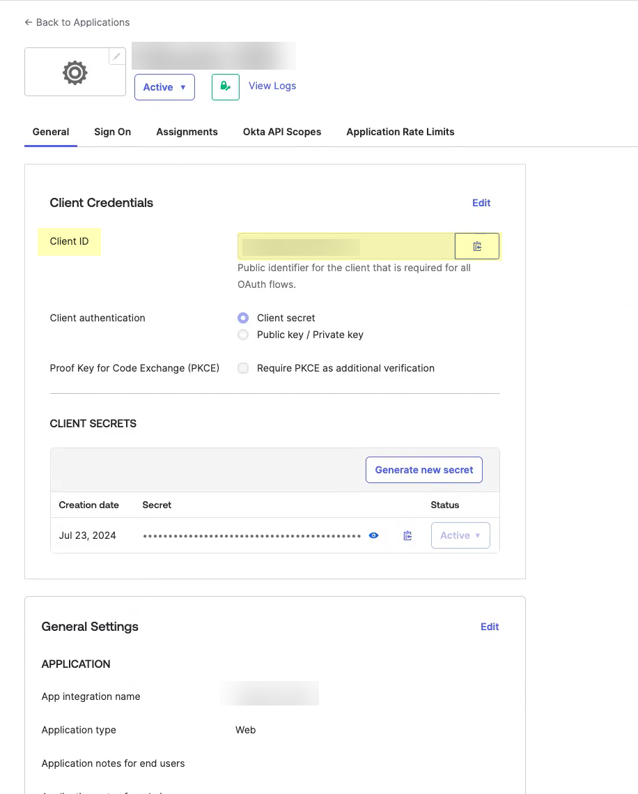 Obtain the information you need to complete your OIDC Okta configuration.- Copy the Client ID.