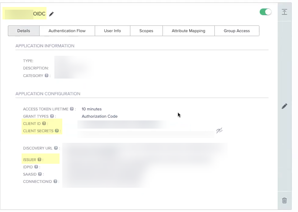Obtain the information you need to complete your OIDC PingOne configuration and enter it in your Cloud Identity Engine configuration.- Copy the following information from your configuration and save it in a secure location: