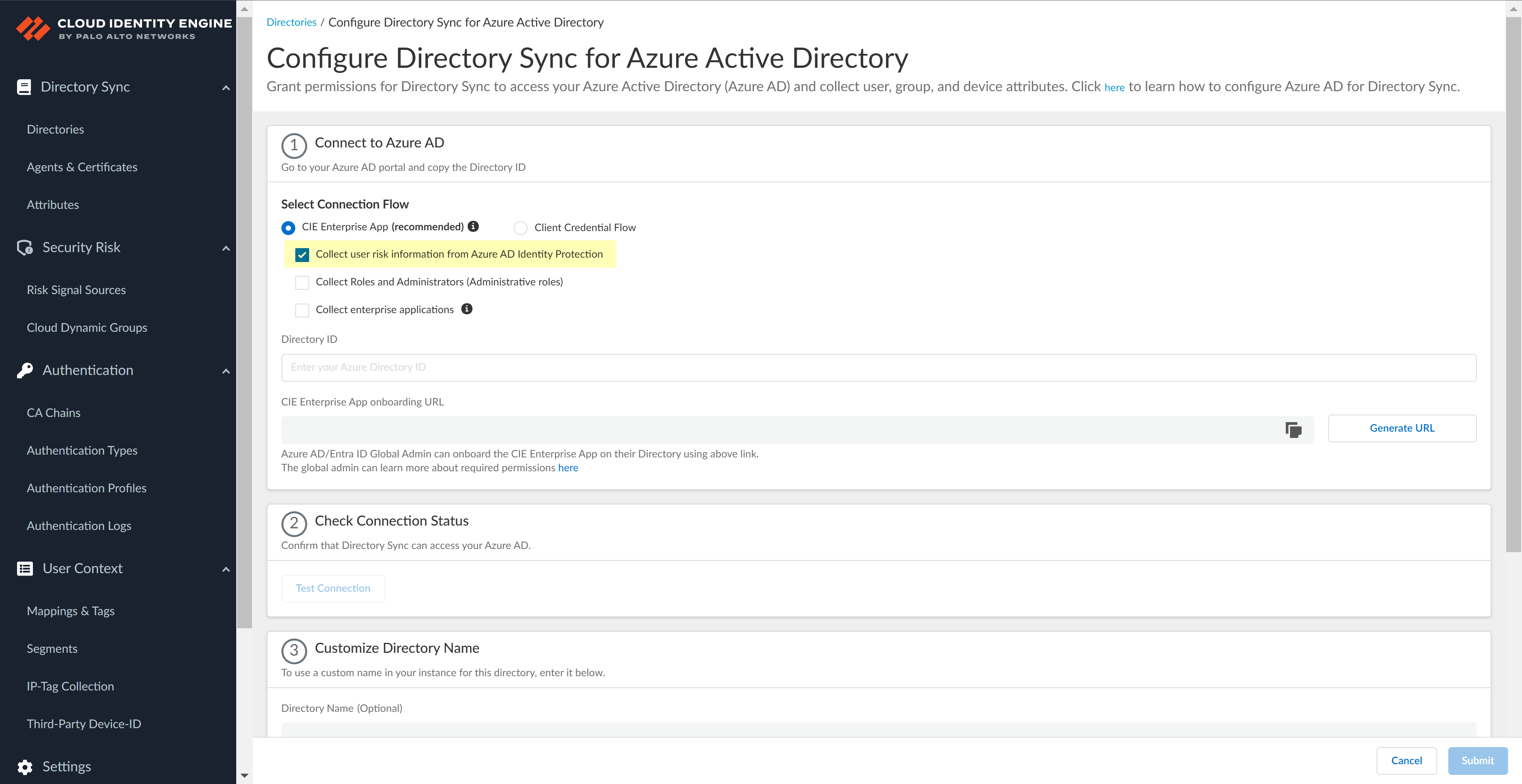 - Configure Security Risk for the Cloud Identity Engine