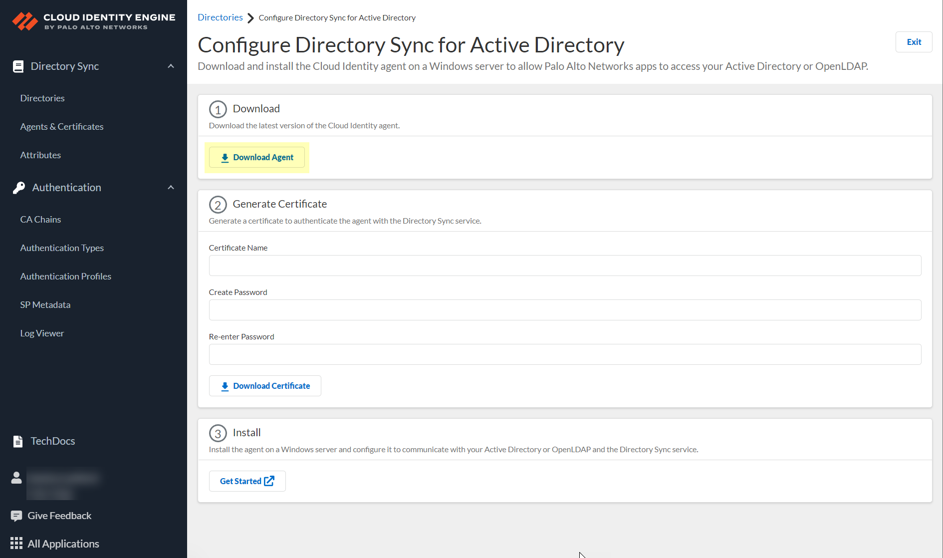 - After configuring the agent, make sure to Authenticate the Agent and the Cloud Identity Engine to enable communication between the agent and the Cloud Identity Engine.