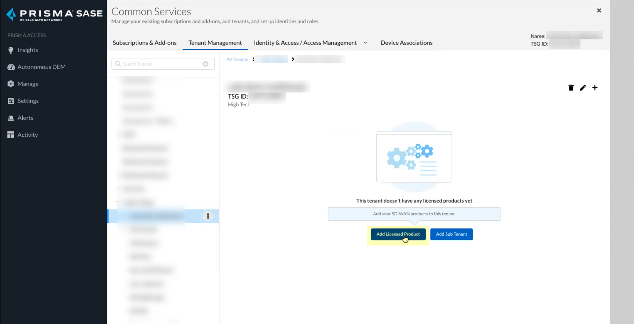 Select your Customer Support Account and enter your firewall serial number.Select the firewall Save your changes.Select Associate Apps.Select the firewall, select the Cloud Identity Engine, and Save your selections.
