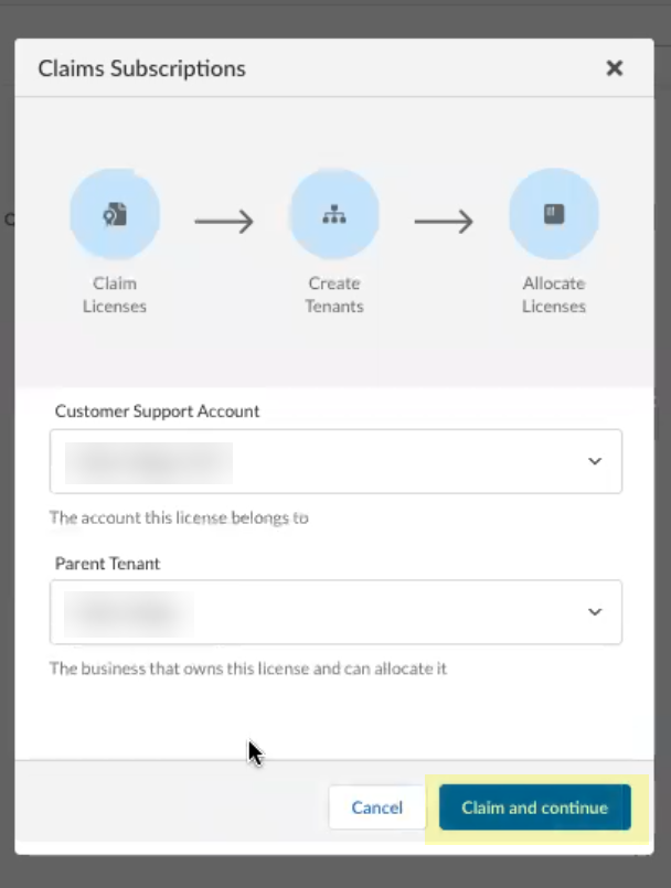 Select the Parent Tenant you want to use or click Create New to create a new tenant.