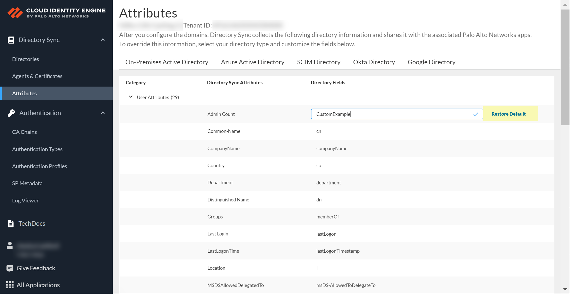 - Log in to the hub and select the Cloud Identity Engine tenant that uses custom attributes.Select Attributes then select the directory type that uses the custom attribute.Select a custom attribute in your directory.The field is now editable.