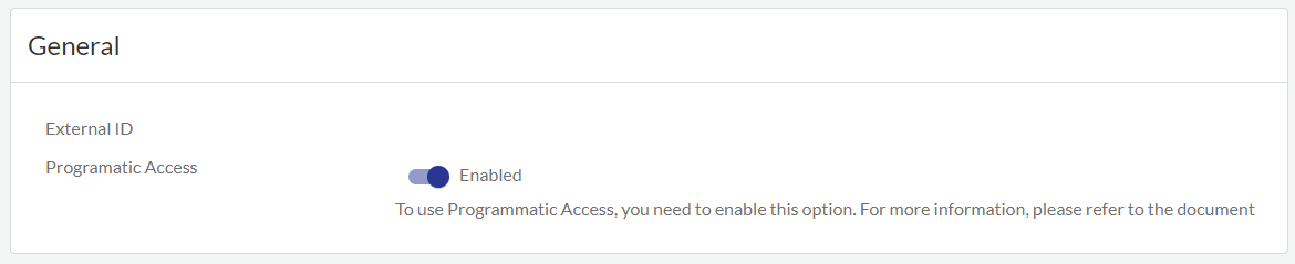 - Under General, click the Programmatic Access slider.