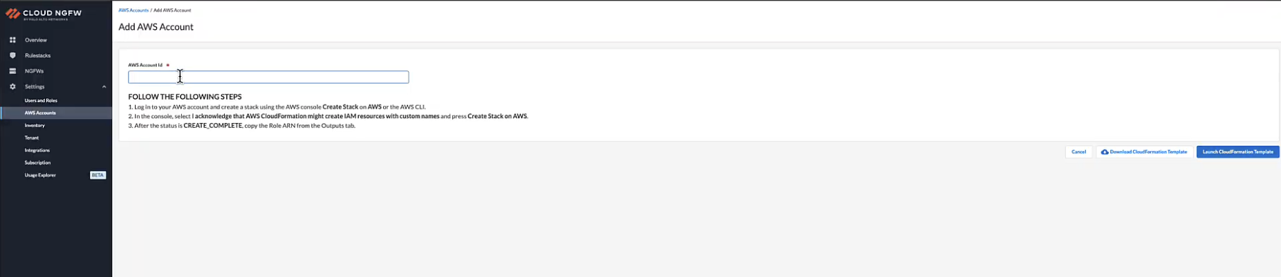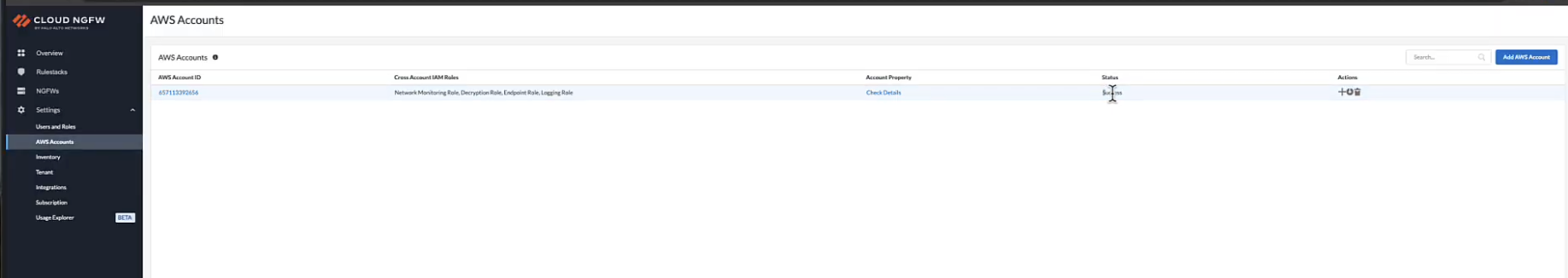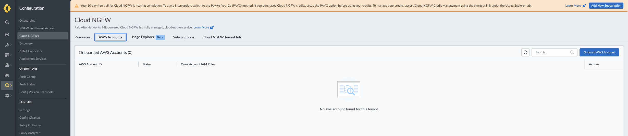- The AWS account you are onboarding must not already be subscribed to a Cloud NGFW tenant.