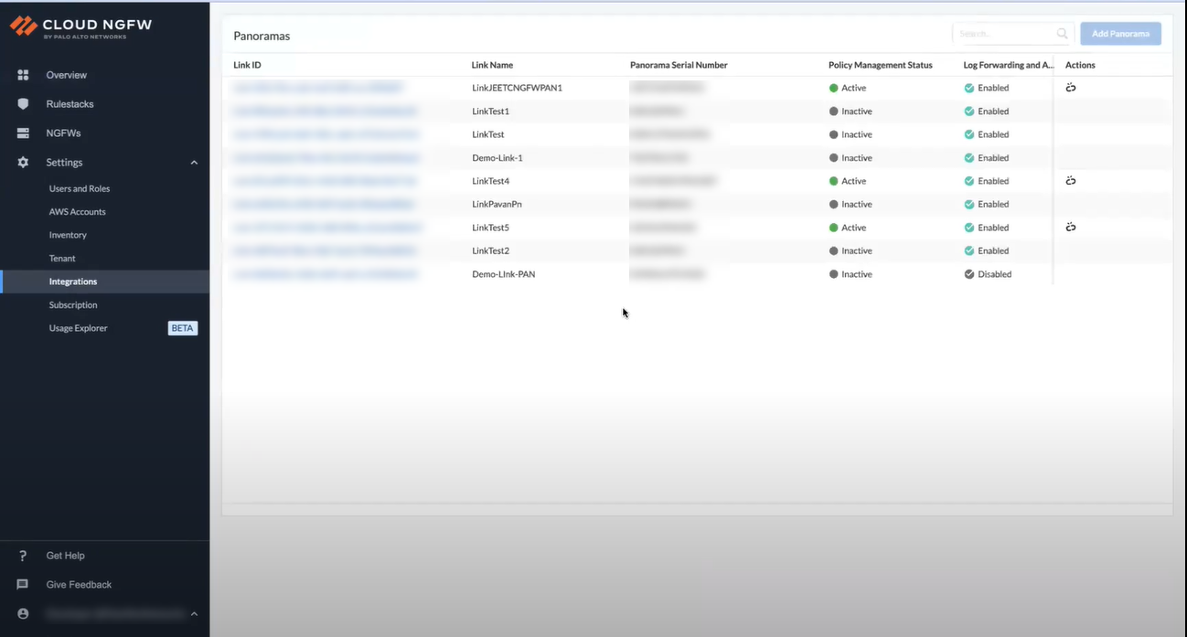 - Log in to the Cloud NGFW console.Select Integrations.