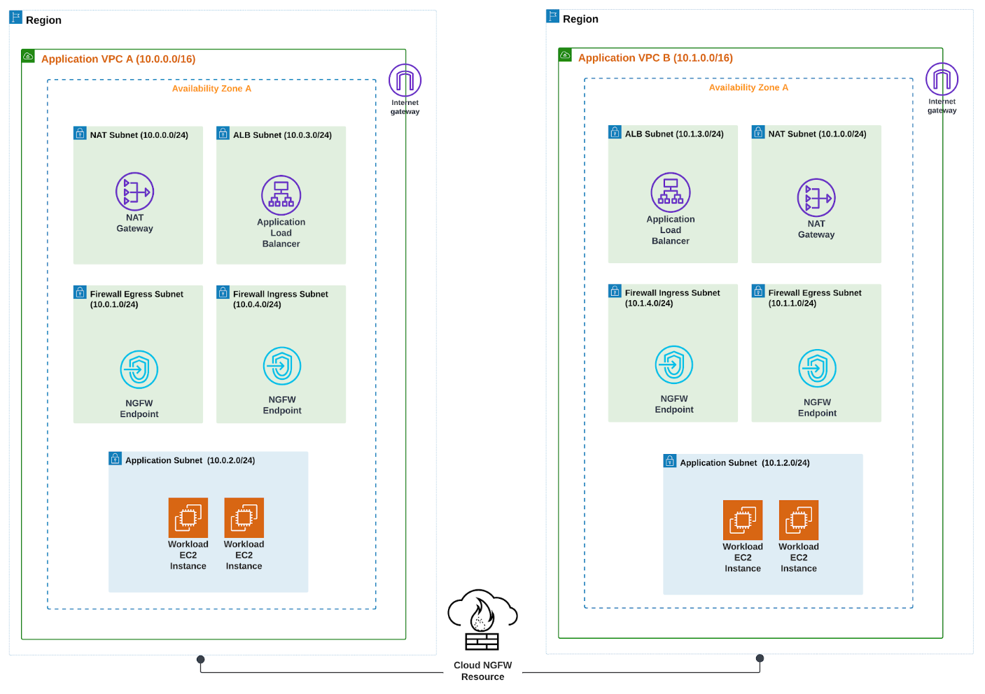 • You share the Cloud NGFW resource across multiple VPCs in different AWS accounts.