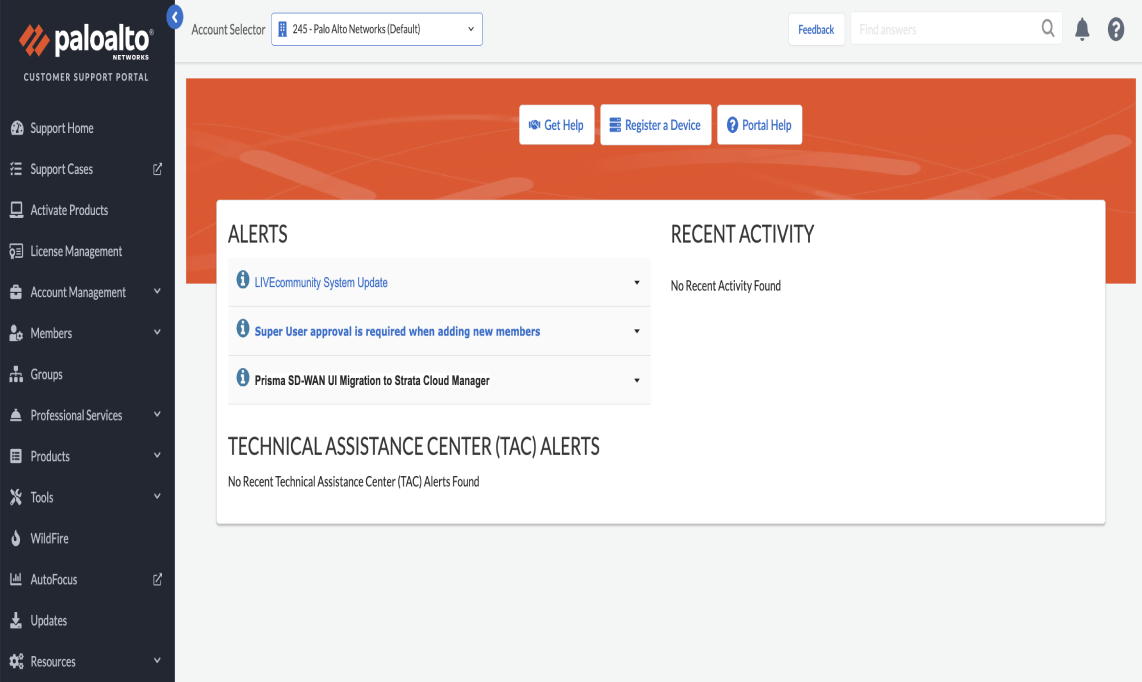 different one to access the Palo Alto Networks support account. Alternatively,