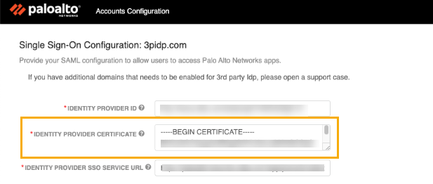- You must have administrator access on the identity provider to update the SSO configuration details provided by Palo Alto Networks.