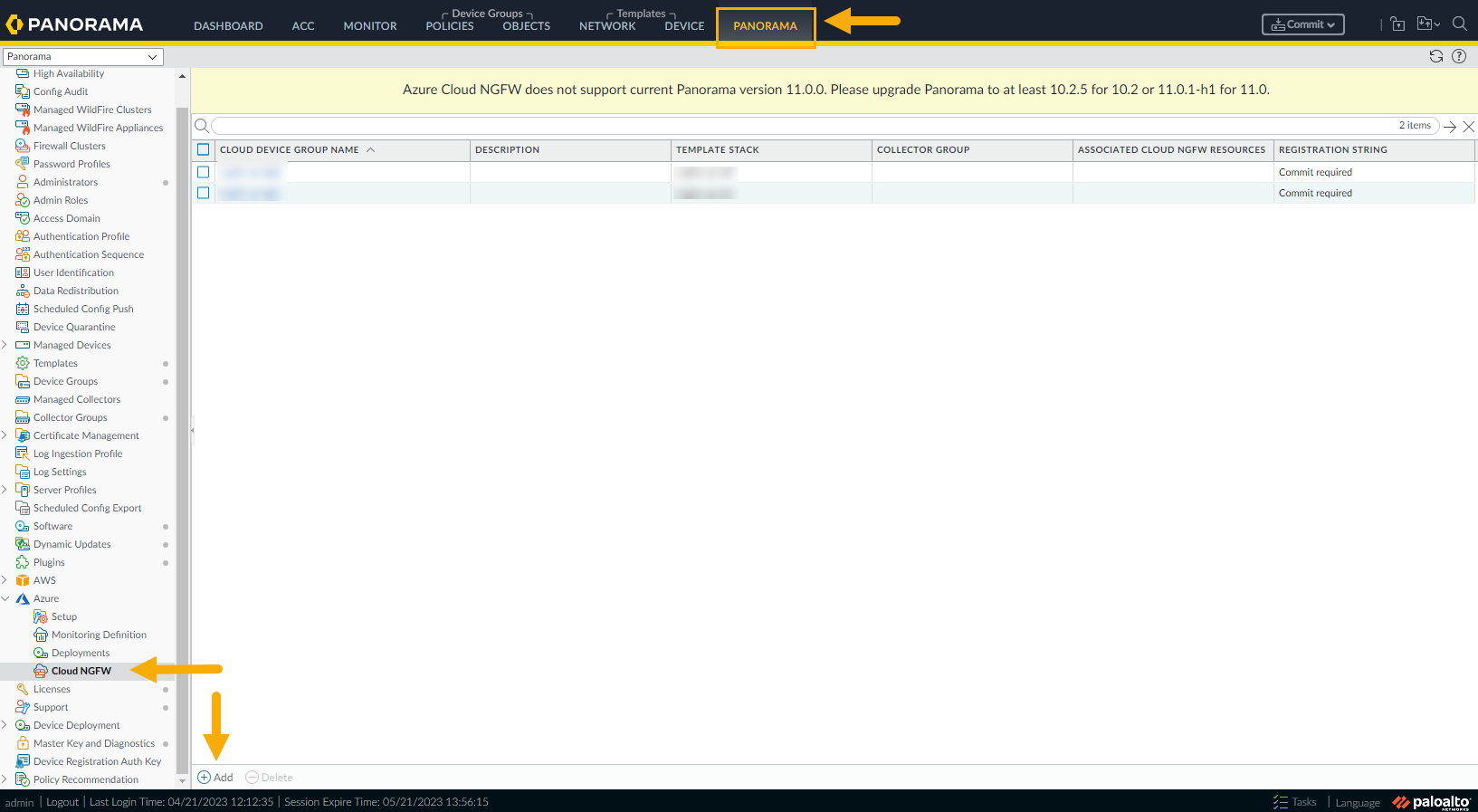 - Enter a unique name for the cloud device group.Enter a description.Use the drop-down to select the Parent Device Group. By default, this value is shared.Select the Template Stack from the drop-down. Or, click Add to create a new one.Select the Panorama IP address used by the deployment. The drop-down allows you to select either the private or public IP address.Optionally select the Panorama HA Peer IP address.Optionally use the drop-down to select the Collector Group.Optionally configure Zone Mapping for the Cloud Device Group. Only two zones are supported: public or private.Click OK.Commit your change in the Panorama console to create the cloud device group. Next, Generate the registration string to create the Cloud NGFW resource and deploy in Azure.