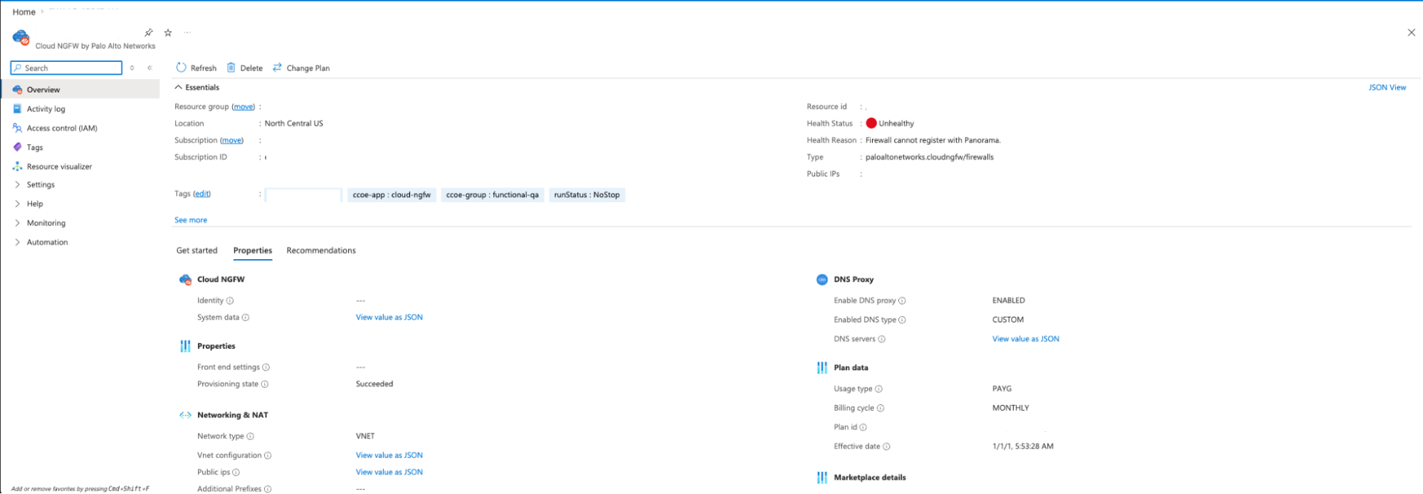 • The Cloud NGFW for Azure resource Health Status changes to Healthy in the Azure portal.