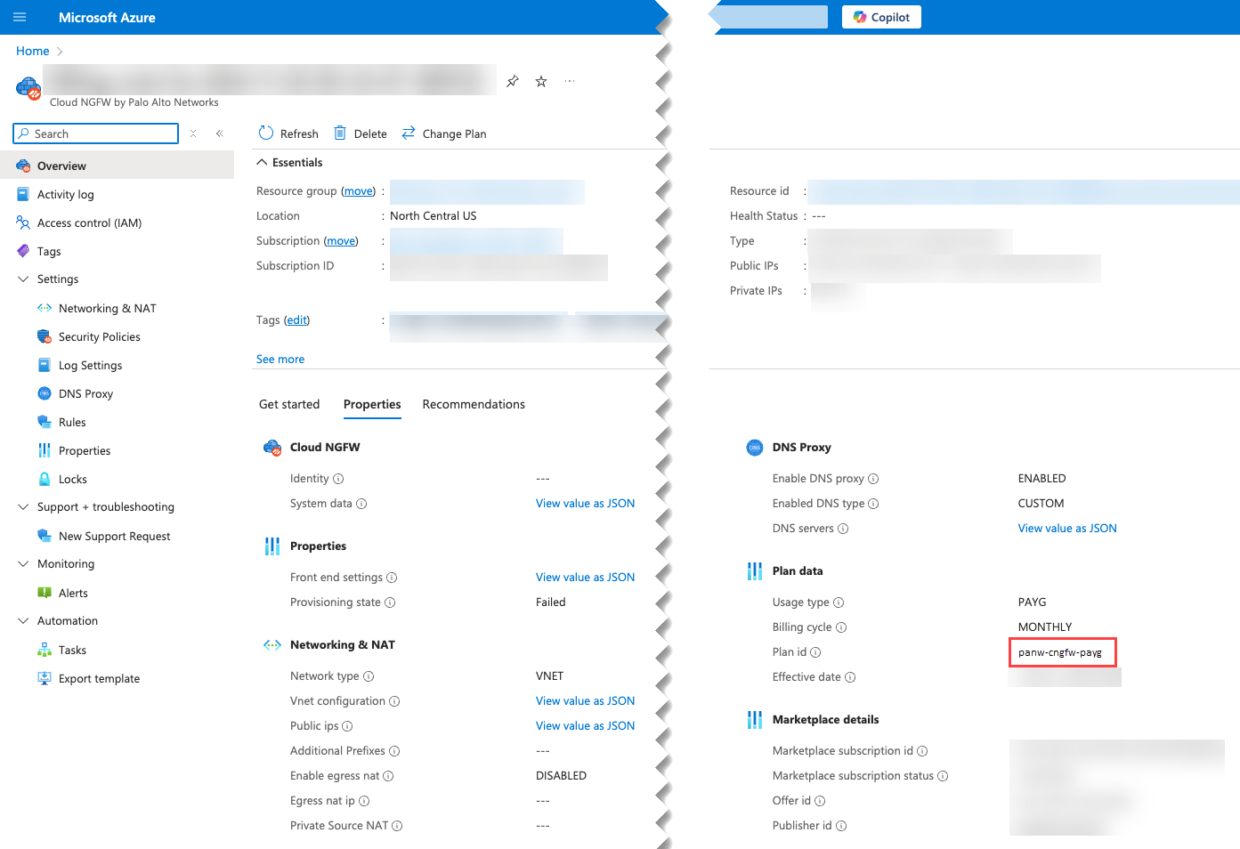 - Select your Cloud NGFW for Azure firewall deployed in your tenant and navigate to the Overview page.