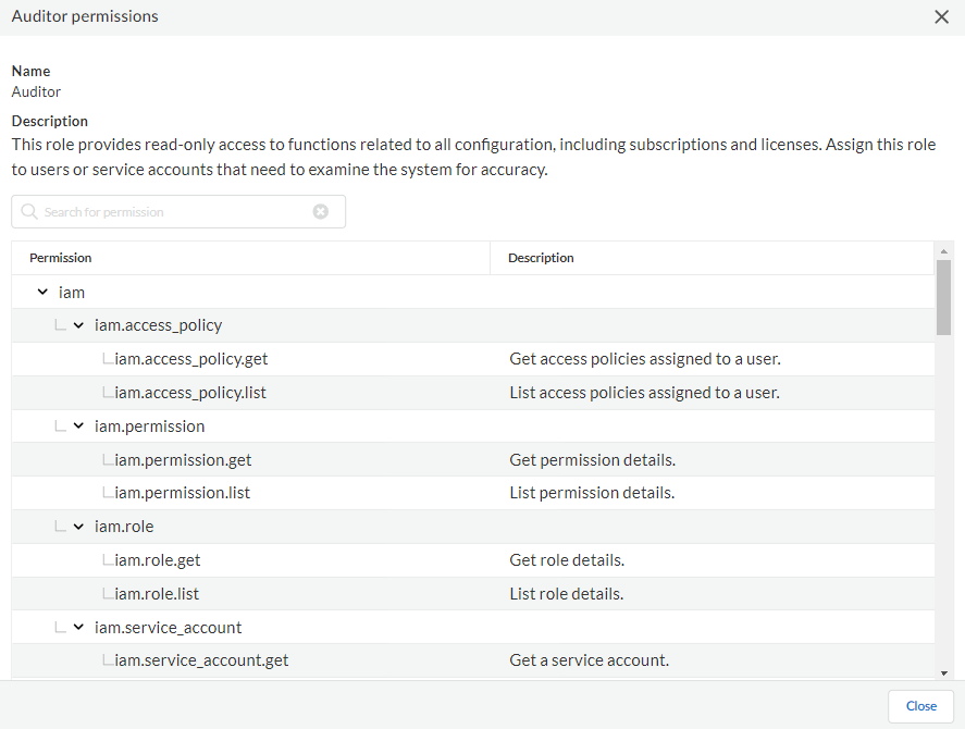 - Select Common ServicesIdentity & Access/Access ManagementRoles to view role permissions.