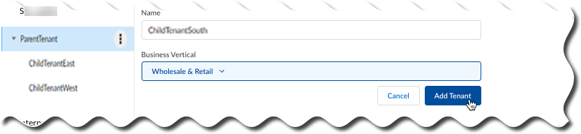 - Use one of the various ways to access Tenants.If you have a single tenant environment, you will see Products instead. The steps are basically the same.Select a tenant to be the parent of the child tenant you want to add.Select New Tenant.