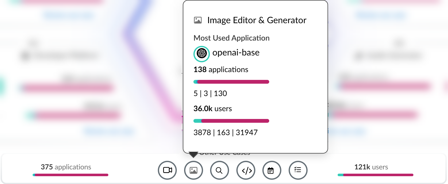Hover your mouse over each of the use cases to see summary information about GenAI app usage associated with the use case.