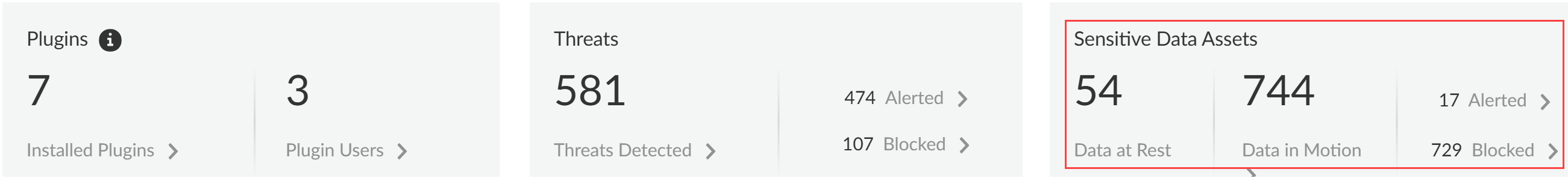 - Sensitive Data AssetsSensitive data assets displays the number of incidents of sensitive data detected when traffic matches the match criteria in your Enterprise Data Loss Prevention (E-DLP) data profile for data at rest (Data Security) and data in motion (SaaS Security Inline).
