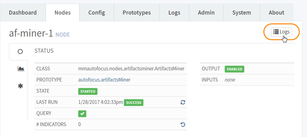 - View all Logs of indicator activity related to the node.