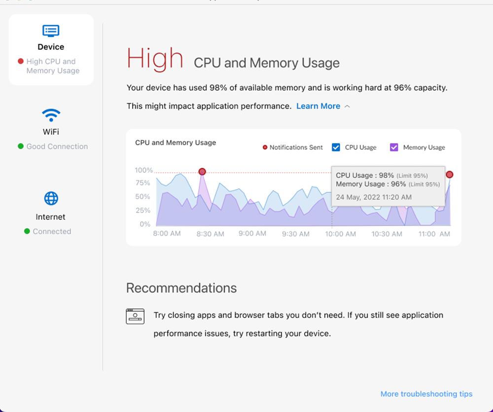 detailed information about performance issues that may be impacting a user’s