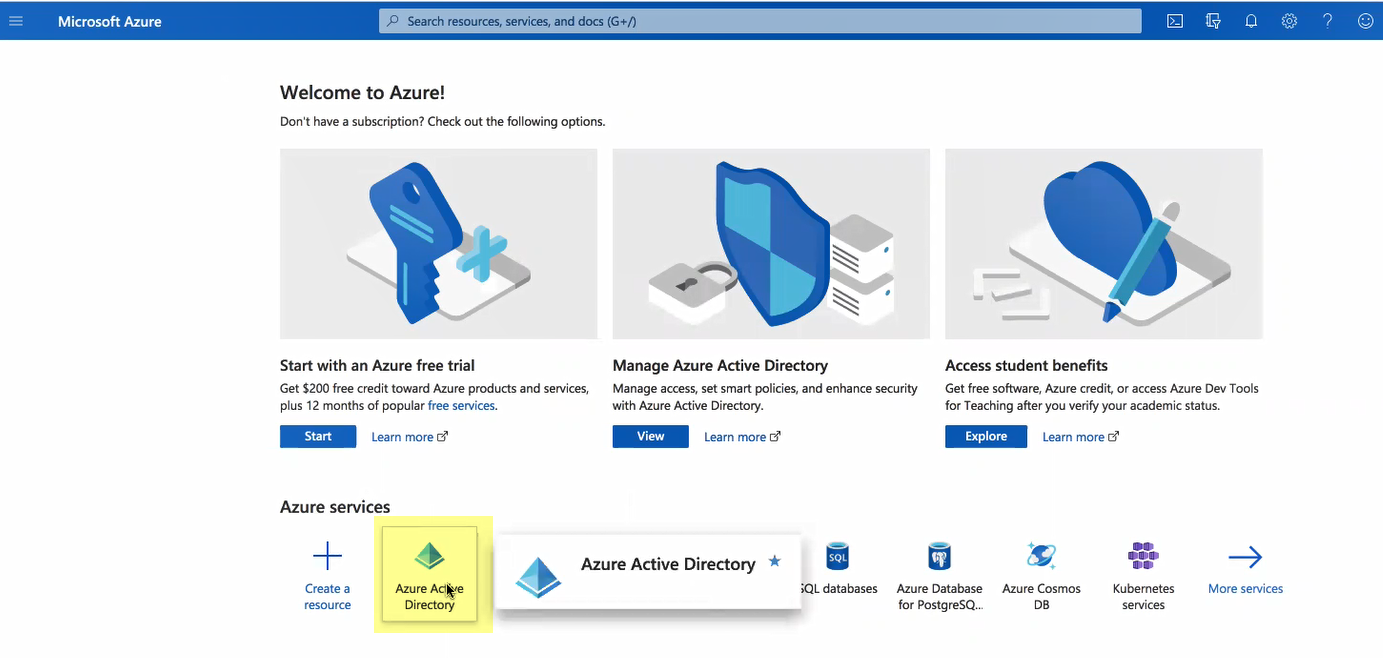 - If you have not already done so, activate the Cloud Identity Engine app.Log in to the Azure Portal and select Azure Active Directory.Make sure you complete all the necessary steps in the Azure portal.
