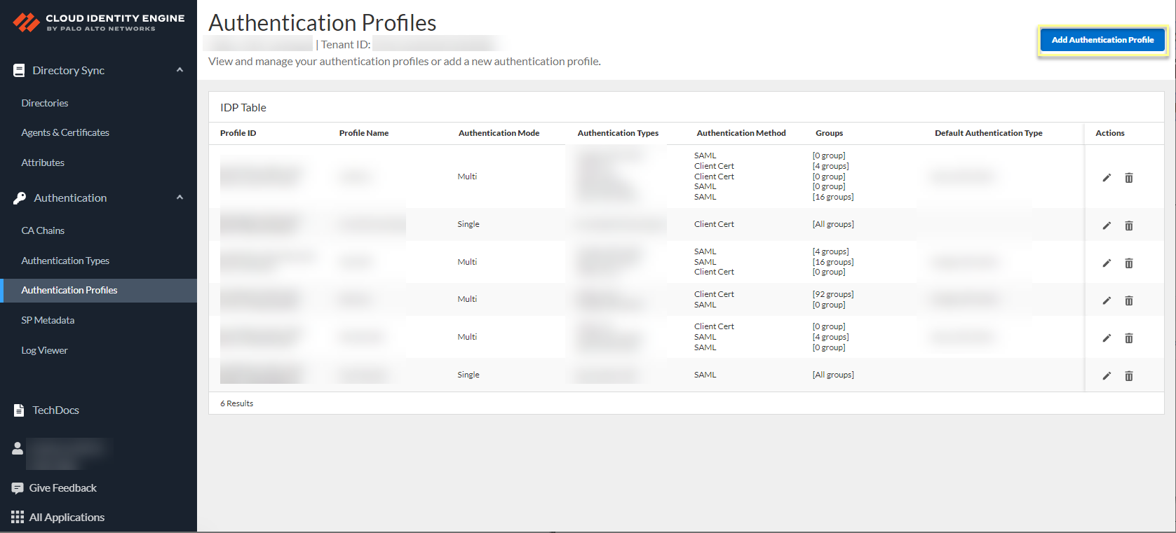 - Select AuthenticationAuthentication Profiles then Add Authentication Profile.