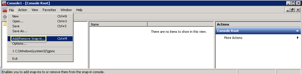 - On the agent host, open Microsoft Management Control (MMC) by selecting StartRun, then entering MMC.Select FileAdd/Remove Snap-In.