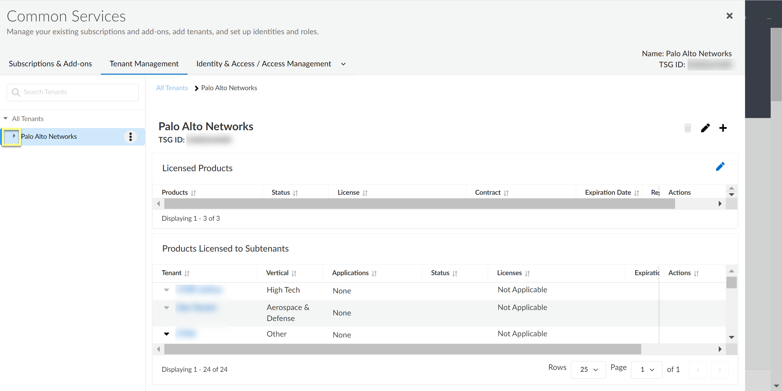 By default, the list of tenants displays as collapsed; click the arrow to display the full tenant list.