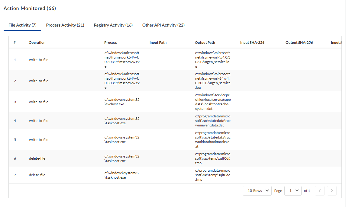 activity details that WildFire recorded during sample