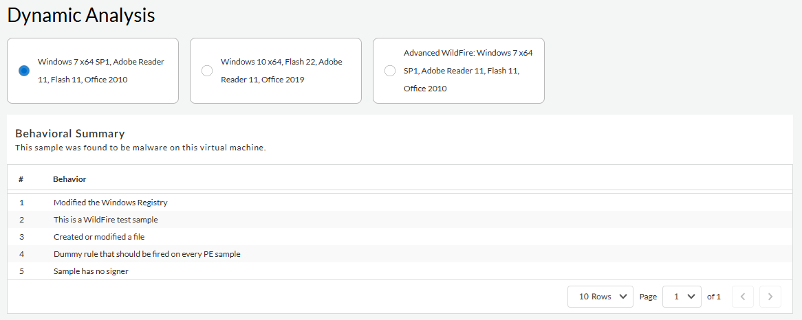 WildFire analysis environment. This also shows the