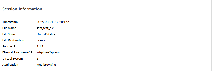 WildFire samples that generate a verdict provide file information and session