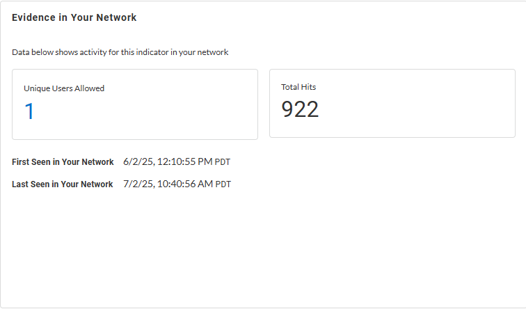 - The artifact’s history and activity in your network. Using this data, you can assess how prevalent the artifact is in your network and compare to Palo Alto Networks global data.