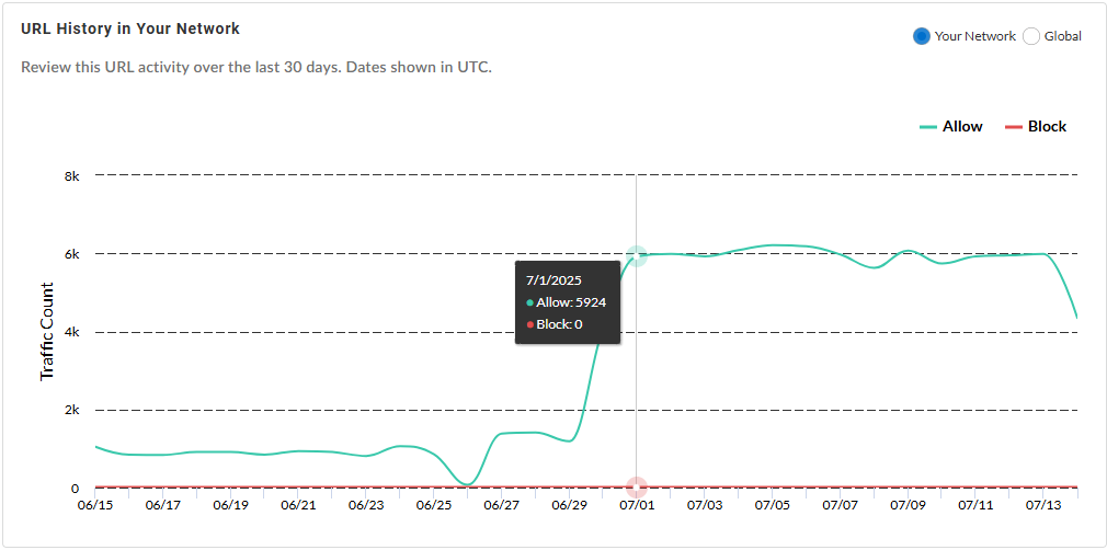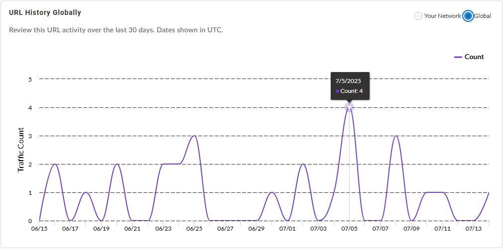 URL History {in Your Network | Globally}—Shows the