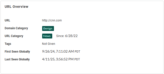 Learn about the URL’s activity across all traffic Palo Alto Networks analyzes.