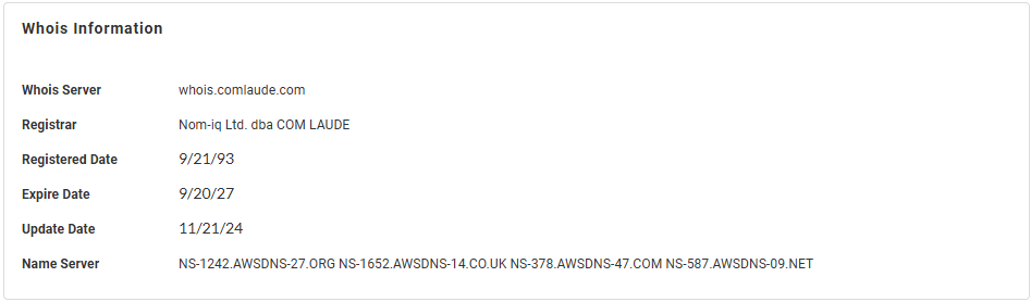 Whois Information —Displays general URL information