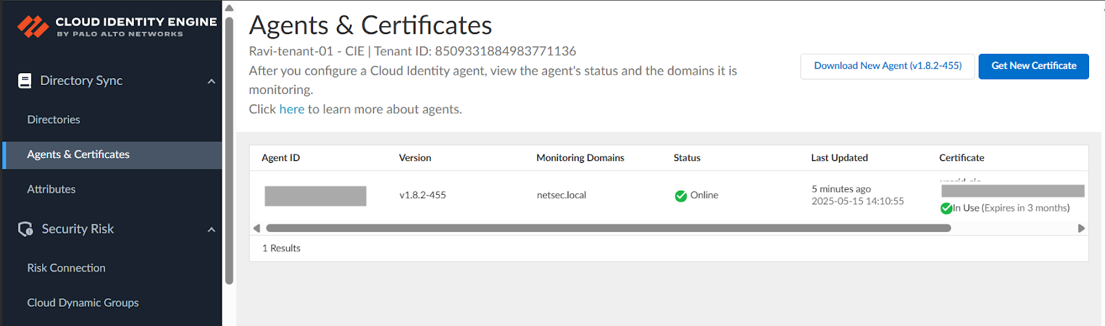 - Deploy Cloud Identity Engine.For more information, see installing, deploying CIE, and authenticating CIE documentation. After a successful authentication of Agent with Cloud Identity Engine, the agent status will be online on Cloud Identity Engine![]() Configure Cloud Identity Engine on Panorama and group mapping.CIE for User-ID on firewalls, in Panorama, go to Device > User Redistribution, and add a CIE instance Configure Cloud Identity Engine on Panorama and group mapping.CIE for User-ID on firewalls, in Panorama, go to Device > User Redistribution, and add a CIE instance![]() For Panorama to learn Group mappings through CIE, configure CIE on the Panorama tab as shown below. For Panorama to learn Group mappings through CIE, configure CIE on the Panorama tab as shown below.![]() The Panorama will now learn these new Group Mappings. The Panorama will now learn these new Group Mappings.![]() Configure Group Mapping. Configure Group Mapping.- For User-ID on firewalls, go to Device > User Redistribution.To configure on Panorama, go to Cloud Identity Engine tabEnable & Add CIE in Device Group.In the Cloud NGFW device group, enable and add the CIE instance.![]() Enable and add Cloud Identity Engine. Enable and add Cloud Identity Engine.![]()  Enable User-ID Redistribution with PanoramaPrerequisites: - Active Directory (AD) environment with users and groups.