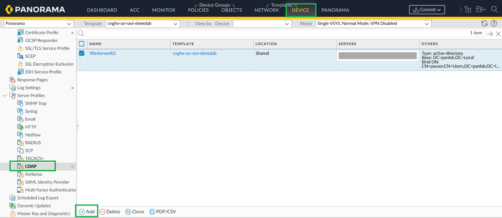 - Security Policy on Cloud NGFW to allow communication with LDAP/Windows server with Active directory.