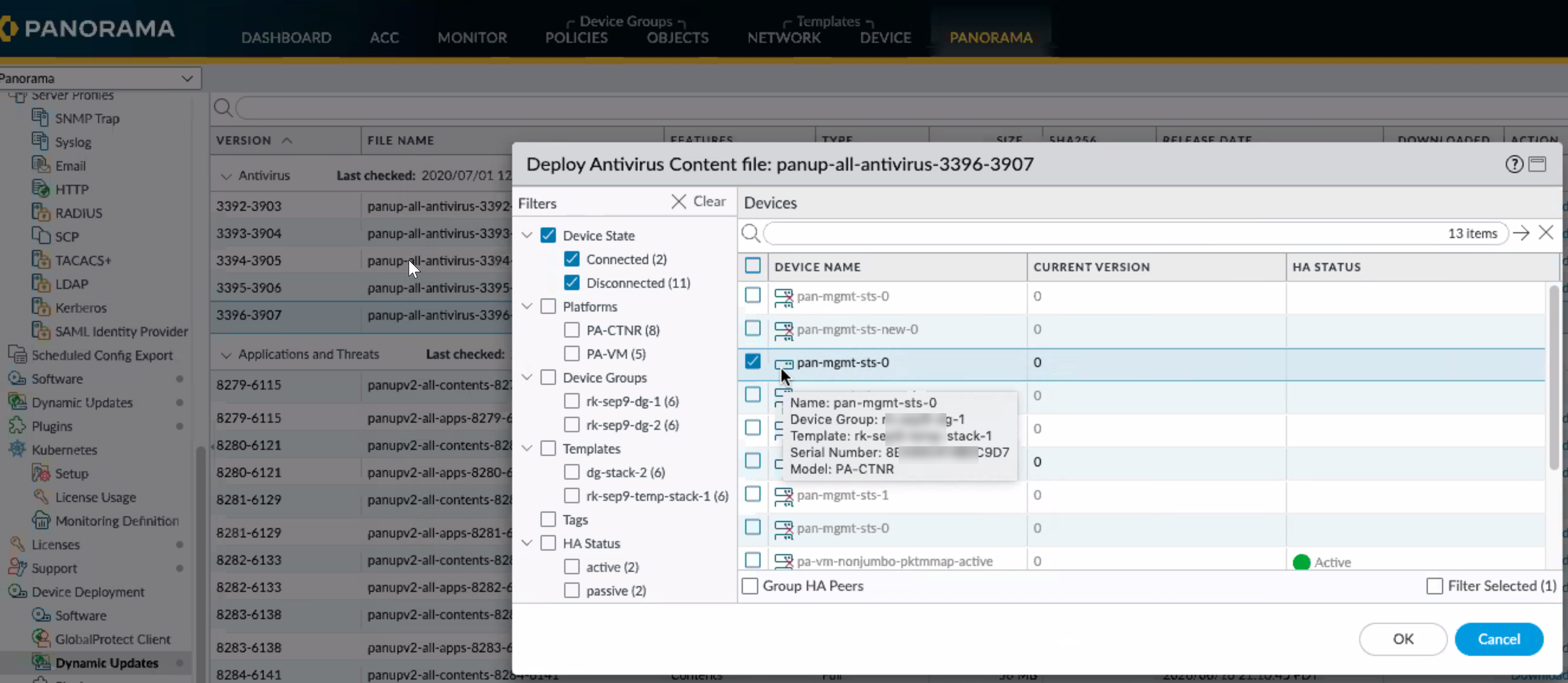 - Apply the new CN-MGMT yaml files.kubectl apply -f pan-cn-mgmt-configmap-new.yamlkubectl apply -f pan-cn-mgmt-new.yaml