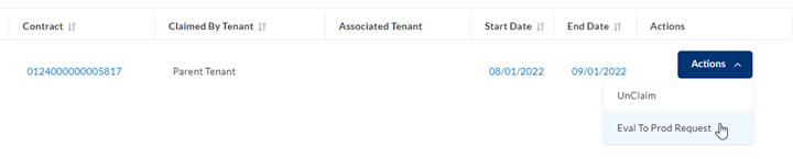Find the subscription that you want to modify, and select ActionsEval to Prod Request.