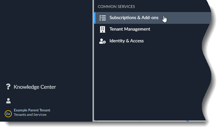 - Use one of the various ways to access Common ServicesSubscriptions & Add-ons.Select Subscriptions & Add-ons. Only one way is shown here.
