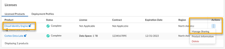 - Use one of the various ways to access Tenant Management.Search or scroll to find the parent tenant where CIE is activated, and select Actions > Manage Sharing.