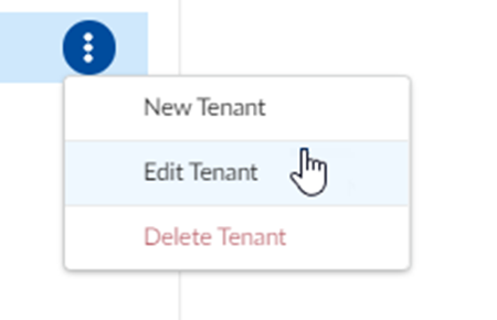 - Use one of the various ways to access Tenants.If you have a single tenant environment, you will see Products instead. The steps are the same.Select the tenant that you want to edit.Select Edit Tenant.![]() Change any of the details about the tenant, as needed. Change any of the details about the tenant, as needed.- Name—Descriptive name that identifies the tenant.