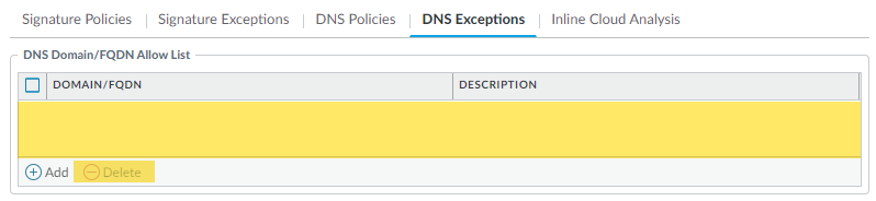 Select DNS Exceptions and remove all DNS Domain/FQDN Allow List entries.
