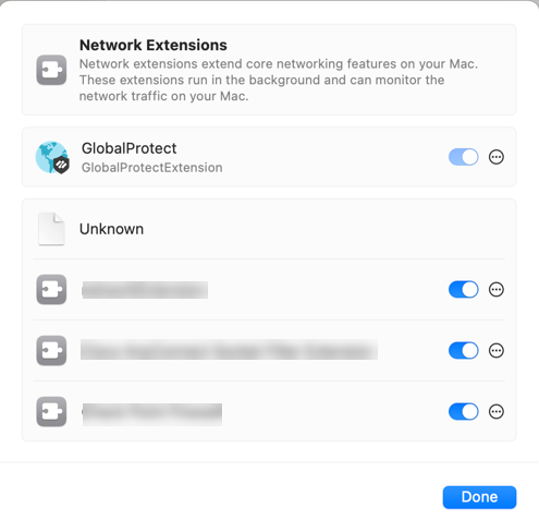 the GlobalProtect system extension through the MDM settings (GeneralSettingsNetwork Extensions.) .