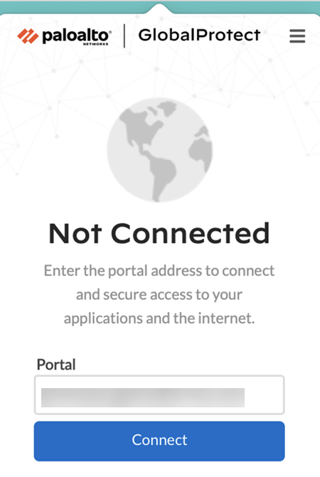 Connect to the GlobalProtect portal or gateway.You can determine if you are connected by checking the GlobalProtect system tray icon. If you are not connected, the icon is gray (), and Not Connected appears when you hover over the icon.