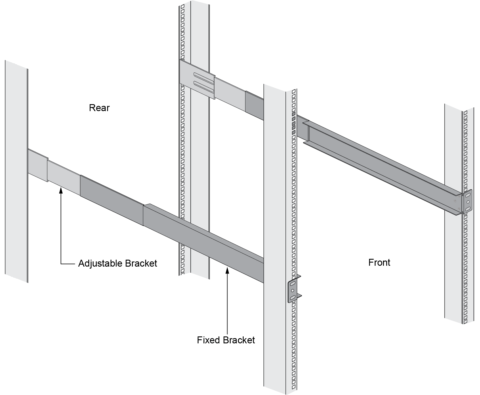 - Slide one of the adjustable mounting brackets into one of the fixed mounting brackets to create a mounting rail. Repeat for the second mounting rail. The adjustable and fixed brackets are the same for the left and right side.