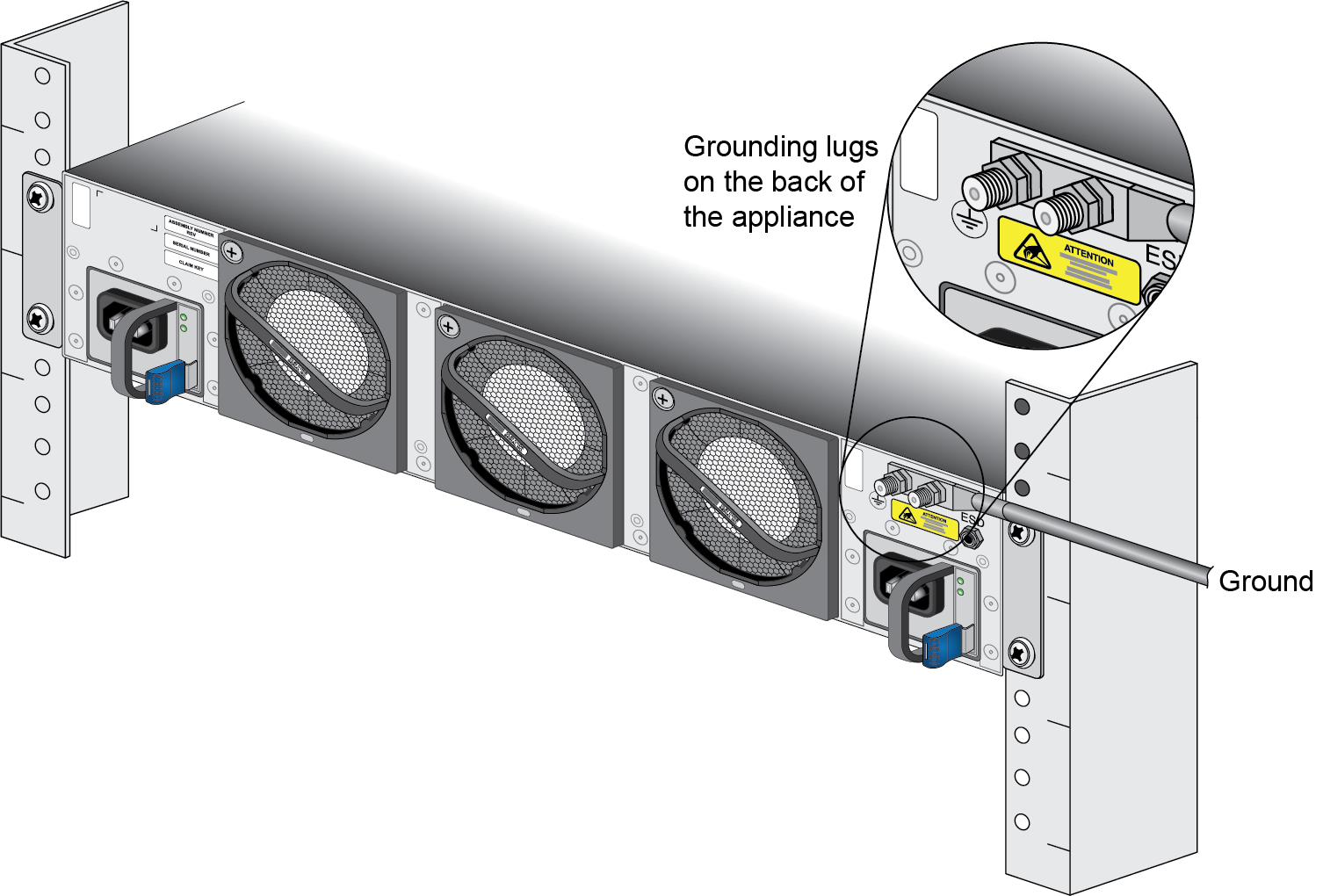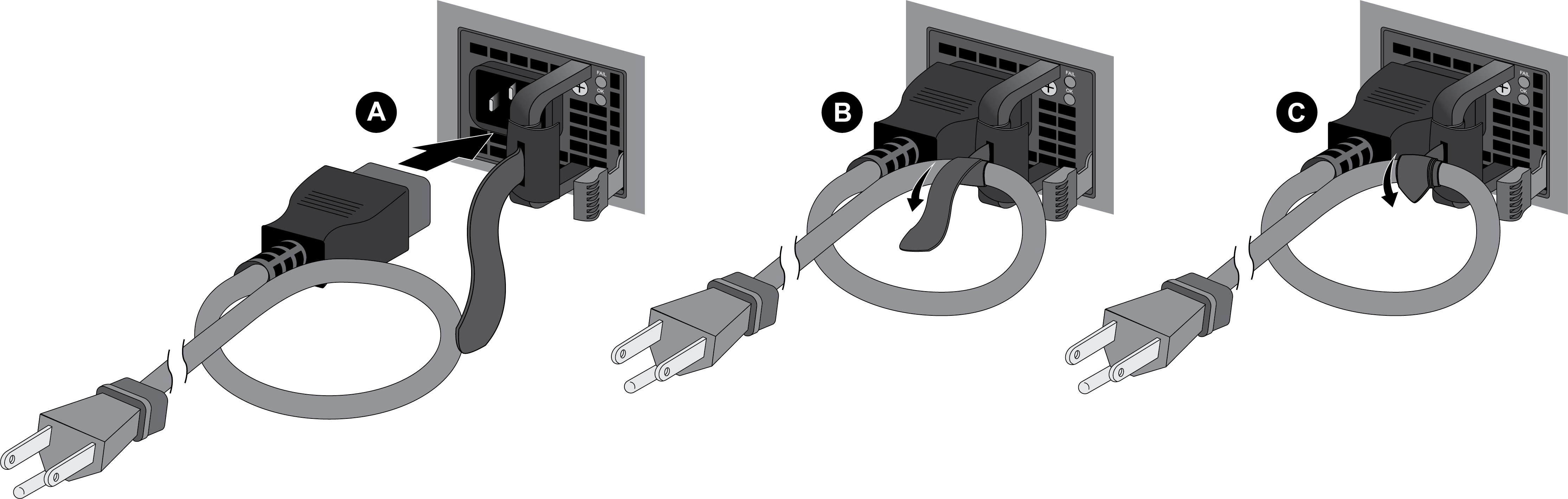 ![]()  ![]() When cabling the DC power supply to your power source, ensure that you route the cable in such a way that it does not put pressure on the plastic clips located at the front of the DC power supplies. It is best to route the cables first and then plug the cables into the power supplies.Secure the power cords to the power inlets using the velcro straps. When cabling the DC power supply to your power source, ensure that you route the cable in such a way that it does not put pressure on the plastic clips located at the front of the DC power supplies. It is best to route the cables first and then plug the cables into the power supplies.Secure the power cords to the power inlets using the velcro straps.![]() After each AC or DC cable is securely connected, turn on the power source and the appliance will power on.Before powering on the firewall, ensure that you have connected your Ethernet cables in accordance to the mode you wish to boot the firewall in (standard mode or Zero Touch Provisioning mode) as specified in Set Up a Connection to the Firewall. After each AC or DC cable is securely connected, turn on the power source and the appliance will power on.Before powering on the firewall, ensure that you have connected your Ethernet cables in accordance to the mode you wish to boot the firewall in (standard mode or Zero Touch Provisioning mode) as specified in Set Up a Connection to the Firewall.